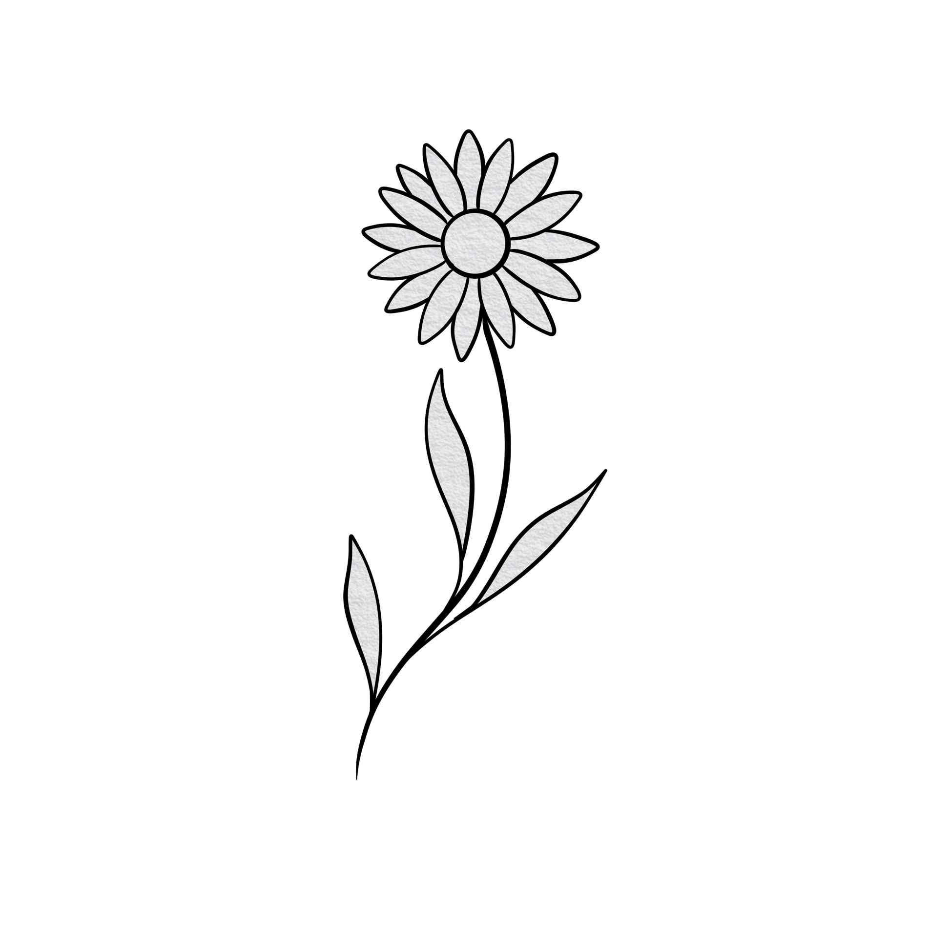 Clean, elegant fine-line daisy with a gentle, sweeping stem and tidy petals—minimal and refined.